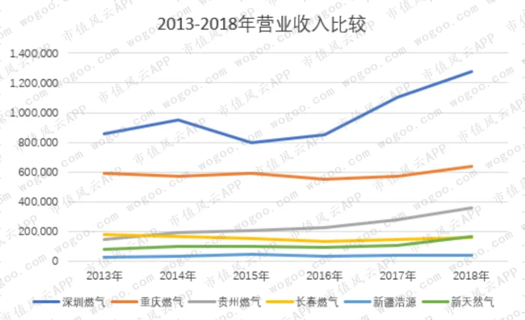 综上分析,6家公司虽均是区域性的燃气企业,但是,营业收入波动有着明显不同。