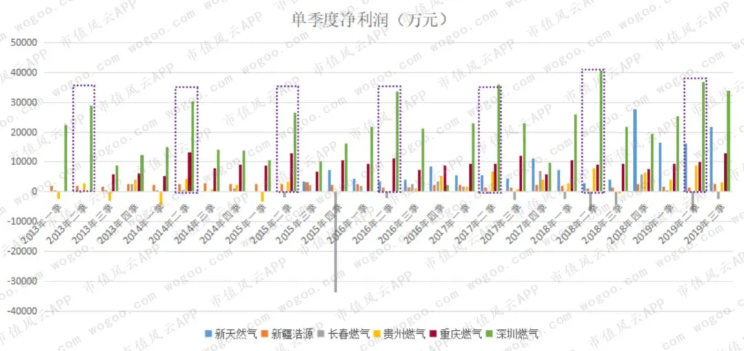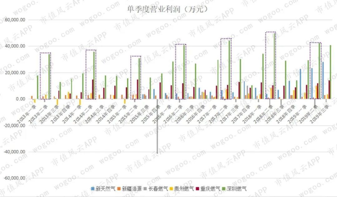 需要注意,新天然气的单季度营业利润有所不同,其峰值主要出现在第三季度或第四季度。