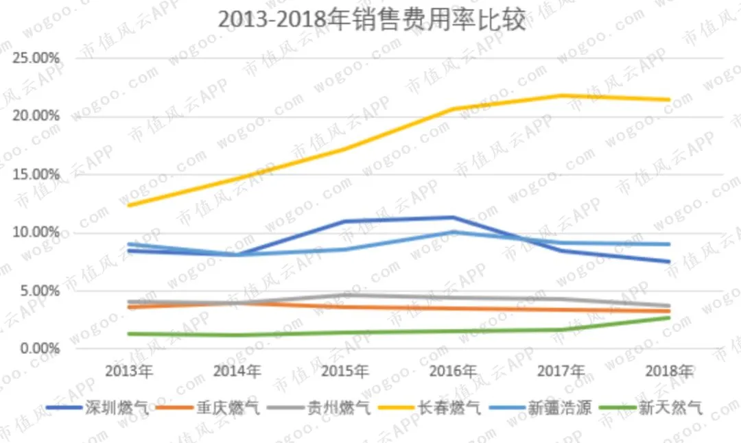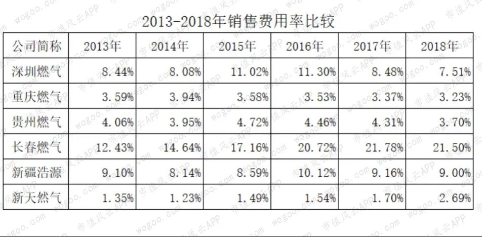 一般而言,天然气销售企业自带区域性垄断的特征,销售费用比较稳定,长期看该销售费用应该是呈现边际递减的特征。