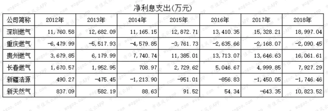 因此,通过分析6家公司的净利息支出情况就大概能够判断该燃气企业所处的发展阶段。