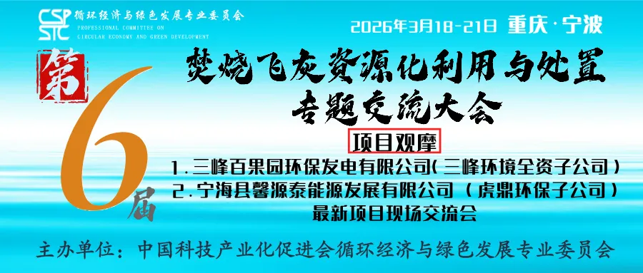 随着“无废城市”与“循环经济”战略的深入推进,飞灰资源化利用与处置正迎来政策、技术与市场的三重共振。2025年,全国飞灰资源化项目加速落地,政策层面对飞灰“趋零填埋”与资源化转型的导向愈发清晰,行业正加速从“末端被动处置”向“全链条价值转化”跨越。五载耕耘,初心如磐。站在“十五五”规划开局的关键节点,为进一步凝聚行业共识、促进技术创新、推动产业落地,由中国科技产业化促进会循环经济与绿色发展专业委员会主办“第六届焚烧飞灰资源化利用与处置专题交流大会”如约而至,定于2026年3月18日-21日在重庆·宁波举办。