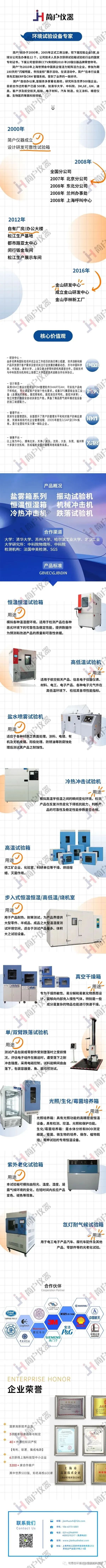 上海简户仪器设备有限公司是专业在可靠性专业厂家,具有16年研发设计生产能力,主要仪器设备有恒温恒湿箱,盐雾试验箱,步入高低温实验室,振动试验机,环境试验箱、力学试验机、生化培养理化设备、其他仪器、老化试验箱、盐雾试验机等产品专业生产加工的公司,公司注册资本1068万元,拥有完整、科学的质量管理体系.上海简户仪器设备有限公司的诚信、实力和产品质量获得业界的认可。欢迎各界朋友莅临参观、指导和业务洽谈。上海简户仪器设备有限公司是一家高科技合资企业,专业生产销售盐雾箱、恒温恒湿机、冷热冲击机、振动试验机、机械冲击机、跌落试验机的环境试验仪器的公司,专业研发生产销售经营各类可靠性环境试验设备。经验丰富,并得到许多国内外厂商的信赖与支持。