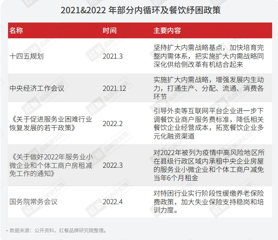 本次调研显示,近七成企业希望减免房租租金,接近五成餐饮企业希望政府减税降费,而近四成企业希望能得到贷款等金融服务支持。基于此,疫情暴发伊始,政府部门就高度关注餐饮行业发展和行业诉求。目前,中央和地方均陆续出台了一系列支持性政策,尤其是进入2022年以来,针对餐饮行业的各项纾困政策纷纷出台,助力包括餐饮企业在内的中小企业共渡难关。餐饮企业面临的发展难题和应对举措