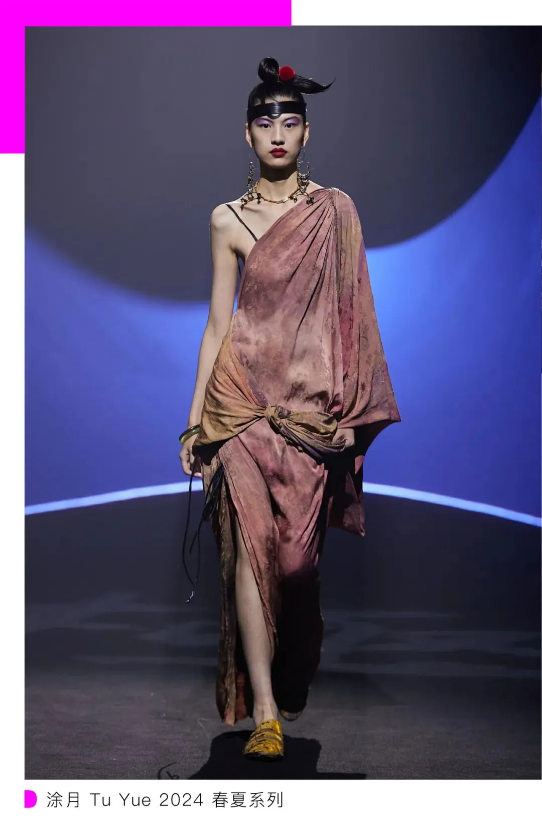 本季,新中式品牌涂月 Tu Yue 的灵感来自词语「百鸟归巢」,以「ILLUSION 依露申」为主题,从庄子的梦蝶和水月镜花中获得启发,又将创始人设计师童年在潮汕融入其中。在设计上,潮汕的传统物件为她提供了灵感,例如潮汕的灯笼和标旗。
