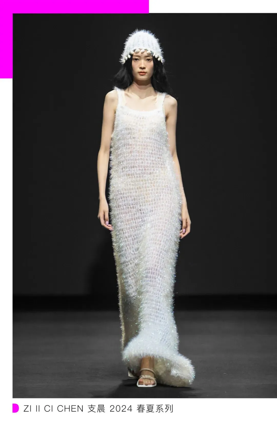 Fabric Qorn 则围绕西方的嬉皮文化和东方哲学中的“理性”展开,通过一系列具有反差感的服饰元素,展现了与当代群体情绪和生活态度更为契合的服饰。除此之外,ZI II CI CHEN 支晨极具现代时尚感的针织撞色新品中融入了南京绢花非遗手工技艺;聚焦“海女文化”的 Oude Waag 简洁的廓形里不难看出,设计师对于民族文化与当代美学的理解。