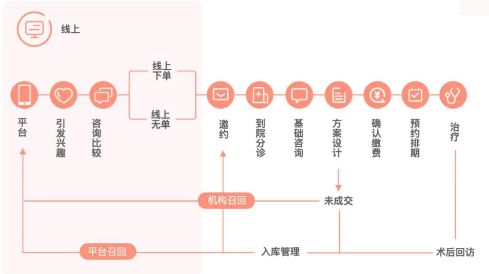 医美线上化可分为平台分发、引发兴趣、线上下单、邀约、到院分诊、基础咨询、方案设计、确认缴费、治疗、术后回访等多个环节。在医美机构线上化不断发展、深化的过程中,新氧模式成为医美线上获客方式的最大创新。为了避免陷入竞价排名与流量获客的漩涡,新氧主动进行转型,把自己由医美电商平台升级为产业互联网平台,通过优质内容产生流量,打开了中国医美数字化进程新的视野。