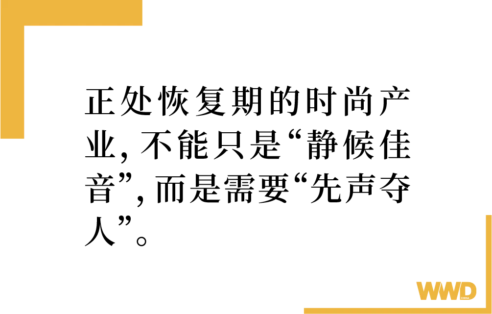 但不可否认、更不能忽视的是,结构性的剧变已经发生。正处恢复期的时尚产业,不能只是“静候佳音”,而是需要“先声夺人”。