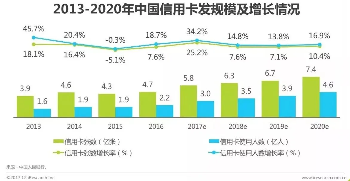 2016年中国信用卡发卡规模位4.7亿张,持卡人突破2亿达到2.2亿人,平均每人持有2张信用卡。中国的信用卡市场始终是一个让传统金融机构又爱又恨的市场,先后经历过学生卡叫停,“暴力”获客等等不健康的市场事件,场内充斥着一定规模的废卡。近几年诞生出的互联网发卡模式,让传统依靠“占便宜发礼品”的方式获取用户的模式有所改观,各大银行从注重规模逐渐向注重质量转变。