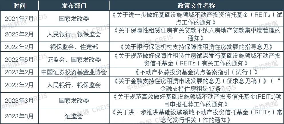 2022年,住宅租金表现较为疲弱。受新冠疫情反复、经济下行压力加大等因素影响,2022年,全国重点50城住宅平均租金累计下跌2.50%。分季度看,2022年仅三季度受高校毕业生入市、中小学开学季等因素影响,租金出现小幅回升,其余三个季度租金均有下滑,其中四季度在传统淡季及疫情感染高峰影响下,租金跌幅达1.62%。2023年一季度,人口流动性提升带动租房需求释放,市场租金有所回升。1月,全国疫情管控措施全面优化,人口流动性逐步提升,但受春节假期影响,50城住宅租金环比仍延续跌势;2月,随着春节假期结束,返城人员增加带动租赁市场进入传统旺季,平均租金环比转涨0.27%;3月市场延续旺季行情,整体租金水平保持上涨趋势,50城住宅平均租金为36.8元/平方米/月,一季度上涨0.13%。图:2021年7月至2023年3月50城住宅平均租金走势租赁市场:https://www.cih-index.com/从城市租金水平看,北京、深圳、上海租金水平明显领先,多数城市租金介于20-40元/平方米/月。截至2023年3月,北京、深圳、上海三个一线城市住宅平均租金均在80元/平方米/月以上,明显高于全国其他城市,其中北京平均租金为90.9元/平方米/月,居各城市之首;杭州、广州、厦门、三亚和南京5个城市租金在40-60元/平方米/月之间;福州、珠海、苏州等37个城市租金在20-40元/平方米/月之间;太原、呼和浩特、徐州、银川、北海5个城市租金在20元/平方米/月以下。图:2023年3月50个城市住宅平均租金及一季度涨跌幅租赁市场:https://www.cih-index.com/从涨跌幅来看,一季度50个重点城市租金20涨30跌。2022年,50个重点城市住宅平均租金年度涨跌幅均表现为下跌。2023年一季度,市场租金表现有所改善,50个重点城市中共20个城市租金上涨,30个城市下跌。具体来看,租金上涨的城市中,三亚、深圳、北京等8个城市一季度租金涨幅在0.5%-1.0%之间,无锡、广州等7个城市涨幅在0.3%-0.5%之间,成都、杭州等5个城市涨幅在0.3%以内;租金下跌的城市中,郑州、温州等6个城市跌幅在1.0%以上,哈尔滨、贵阳等9个城市跌幅在0.5%-1.0%之间,沈阳、常州等7个城市跌幅在0.3%-0.5%之间,南昌、福州等8个城市跌幅在0.3%以内。2016年以来,“租购并举”成为我国住房制度建设的重要方向,中央持续出台相关政策完善顶层设计。2020年中央经济工作会议首次提出“要高度重视保障性租赁住房建设,加快完善长租房政策,逐步使租购住房在享受公共服务上具有同等权利,规范发展长租房市场”。2021年,国务院发布《关于加快发展保障性租赁住房的意见》,从顶层设计层面为住房租赁市场发展导向定调,以保租房为抓手,优化住房租赁市场供应结构,促进住房租赁市场发展。2022年以来,中央多次在重要会议及纲领性文件中提及完善住房保障体系及培育发展租赁市场,坚持租购并举,多主体供给、多渠道保障,以人口净流入的大城市为重点,大力增加保租房供给。二十大报告再次强调“坚持房子是用来住的、不是用来炒的定位,加快建立多主体供给、多渠道保障、租购并举的住房制度”,为租赁市场中长期发展定位指明了方向。2022年12月中央经济工作会议,也明确指出“解决好新市民、青年人等住房问题,探索长租房市场建设。”中央对住房租赁市场发展定位的顶层设计推动了相关支持政策的加速出台,自上而下地坚定了各方的决心与信心,引导企业积极参与市场建设,住房租赁市场逐步进入高质量发展阶段。长期以来,回报周期长、沉淀资金多等问题是阻碍住房租赁市场发展的痛点,为提升各方主体投资建设租赁住房的积极性,近年来中央层面聚焦金融领域出台多项支持政策,为租赁行业各参与主体提供专项金融支持、优化金融服务,同时积极推进保租房公募REITs试点落地。2022年,在各项政策的支持之下,保租房公募REITs快速落地,融投管退商业闭环打通。截至目前,我国已有4支保租房公募REITs正式上市,其中红土深圳安居REIT、中金厦门安居REIT、华夏北京保障房REIT由地方保障房平台运营,华夏基金华润有巢REIT则是首支由市场化机构运营的保租房REITs。在各项政策的支持之下,保租房公募REITs推进速度较快,当前4支正式上市的保租房公募REITs从证券交易所受理至审核通过平均历时仅33天,其中华夏北京保障房REIT仅用时7天,而2022年上市的其他基础设施公募REITs从证券交易所受理至审核通过平均历时约132天。公募REITs为租赁市场发展提供了宝贵的融资退出渠道,有效地解决了租赁住房项目投资回收期长、资金使用效率低的问题,使得保租房“融投管退”的商业闭环得以形成。2023年一季度,保租房公募REITs发行再获支持。3月,国家发改委发布《关于规范高效做好基础设施领域不动产投资信托基金(REITs)项目申报推荐工作的通知》,证监会发布《关于进一步推进基础设施领域不动产投资信托基金(REITs)常态化发行相关工作的通知》,对保租房REITs的支持力度进一步加大,保租房REITs发行门槛有所下降:(1)非特许经营权、经营收益权类项目预计未来3年每年净现金流分派率要求从4%降至3.8%;(2)充分考虑保障性租赁住房的保障属性,鼓励更多保障性租赁住房REITs发行,首次发行基础设施REITs的保租房项目,当期目标不动产评估净值要求从10亿元降至8亿元。2023年2月,人民银行、银保监会发布《关于金融支持住房租赁市场发展的意见(征求意见稿)》,为租赁住房的投资、开发、运营和管理提供多元化、多层次、全