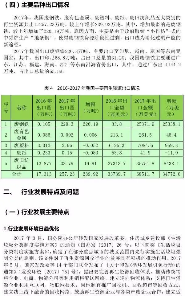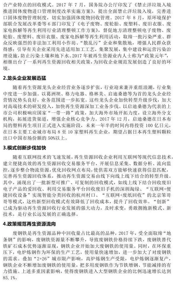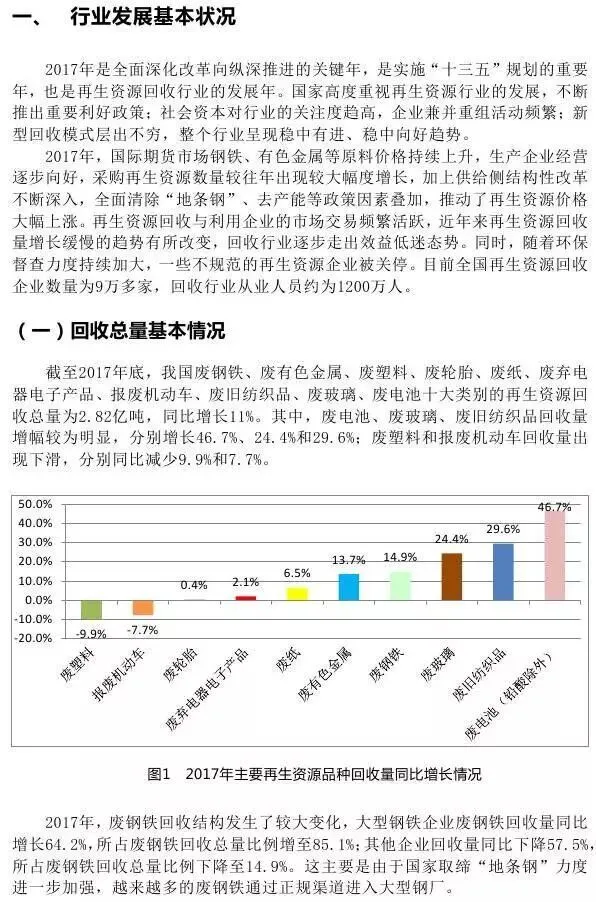 今日,商务部发布《中国再生资源回收行业发展报告(2018)》,再生资源(zaisheng99)公号摘录其相关内容,与大家共享。