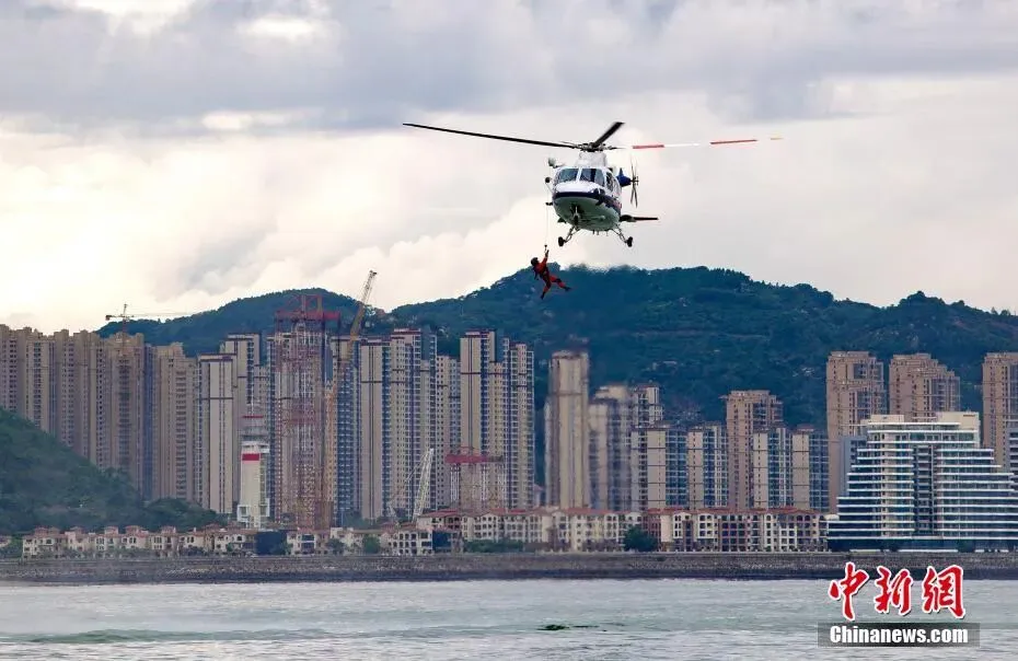 图为东海救助飞行队专业救助直升机展开救人演练。福建海事局 供图