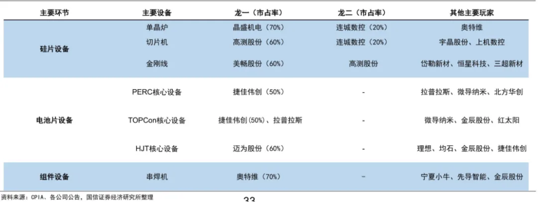 下游——下游应用企业主要为光伏电池生产厂商,以华晟新能源、东方日升、爱康科技、金刚光伏等新进入者为主,老牌厂商以Topcon技术路径过渡为主。