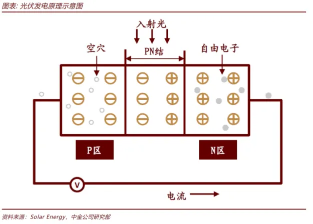 来源:Wind、并购优塾2024年1月20日-21日,我们推出《DCF现金流贴现-建模技能速成指南》线下精品研讨会,纯正的建模干货,全流程快速上手实操,希望能帮大家少走弯路。2024年3月16日-17日,并购优塾将在上海举办为期两天的《数字化背景下的业财融合、全面预算与资金管理》主题研讨会。本课程从数字化技术发展对财务影响、业财融合、全面预算、资金管理等主要内容出发,目的在于帮助财务总监升级现代财务管理思维与管理方法。光伏发电的本质,是P型硅片(硅掺杂硼产生空穴)和N型硅片(硅掺杂磷产生电子)组合在一起,形成PN结。当PN结吸收阳光能量,进而激发电子通过外部导线流入空穴,随之产生电流。这个过程,也就是“光生伏特效应”,学术说法是:当物体受到光照时,因光能被吸收,电子发生跃迁,物体内的电荷分布状态发生变化而产生电动势和电流。在硅晶体中掺入硼元素,即可做成P型硅片。硅是4价元素,外围有4个电子,如果把3价元素硼与硅结合,则会多出一些空穴,表现出正电特性,即P型硅(Positive,带正电)。