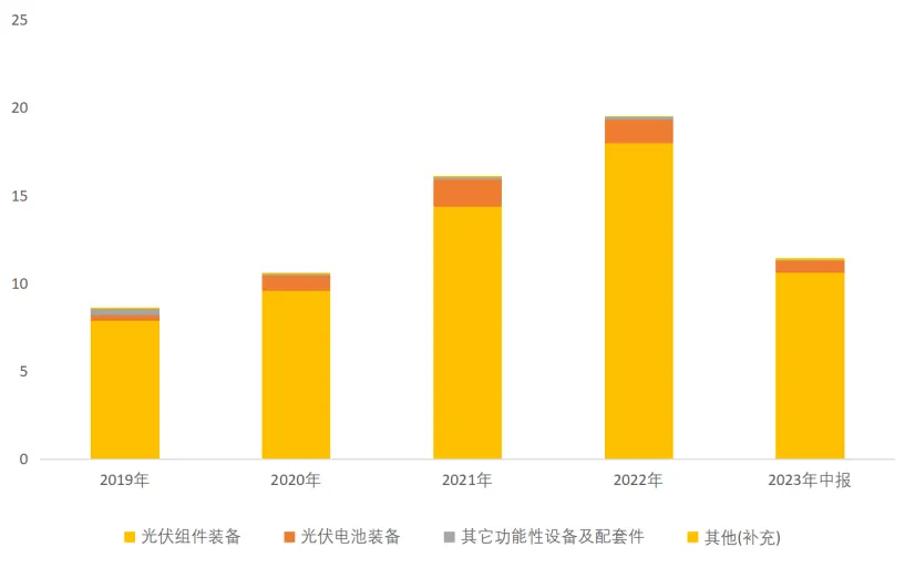 金辰股份——产品主要为光伏组件自动化生产线成套装备,并从伏组件设备向电池制造装备领域延伸布局,研发用于TOPCon及HJT的PECVD设备,形成光伏组件及电池“双核心”驱动的业务模式。2023年中报,光伏组件设备占比92.82%,光伏电池装备占比5.65%,其他设备及配件占比0.9%。