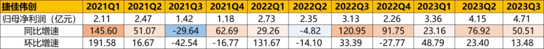 来源:并购优塾二、捷佳伟创——2023年前三季度,实现营收64.05亿元,同比+50.48%,归母净利润12.23亿元,同比+48.96%,扣非归母利润11.30亿元,同比+48.16%。Q3单季度,实现营收23.22亿元,同比+47.23%,环比+7.90%,归母净利润4.71亿元,同比+50.51%,环比+13.48%,扣非净利润4.42亿元,同比+49.88%。