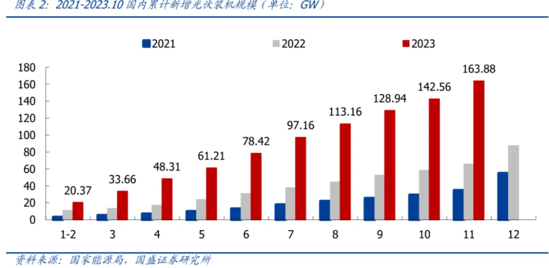 图:国内新增光伏装机月度数据 来源:国盛证券