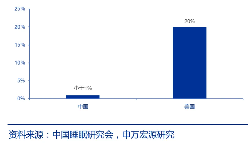 在经济条件没有达到一定程度的时候,大多数人并不愿意为睡眠呼吸障碍看病花钱,从而导致在这个赛道,患病诊疗率更是远远不及美国。