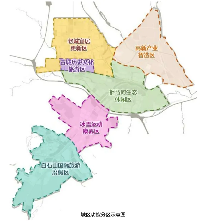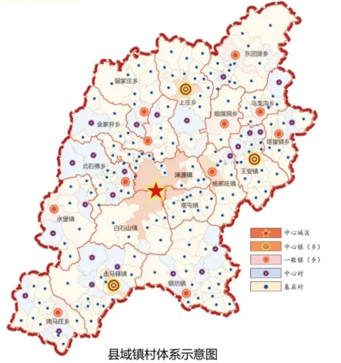 产业体系稳步建设的同时,涞源全域发展建设以“主动融入京雄保一体化发展格局,加快建成京津冀世界级城市群中的品质生活之城”为目标,规划自然资源开发,生态空间保护,绿色农业发展和城乡产业发展,对中心城区按照“生态宜居,圈层发展”的原则,规划“两心,两轴,三区,多点”城乡发展结构,中心城区形成“老城宜居更新区,高新产业智造区,古城历史文化旅游区,拒马河生态休闲区,冰雪运动康养区,白石山国际旅游度假区”六大分区,并构建相应的交通、市政与社区公共服务体系。