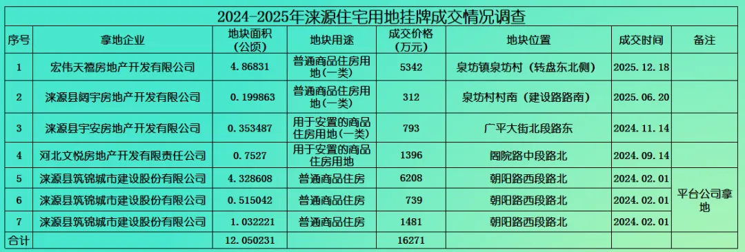 (2024-2025涞源住宅用地挂牌成交情况统计)