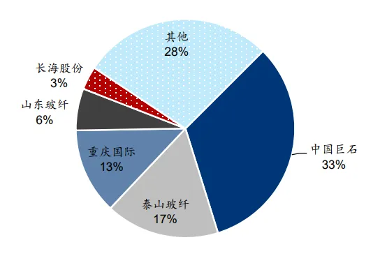 图:截至2024年4月国内玻纤供给市场格局,华泰证券