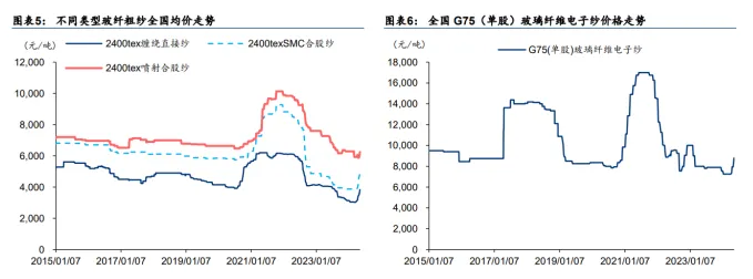 图:各类玻纤均价走势(单位:元/吨),华泰证券