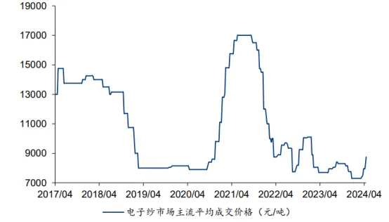 图:电子纱成交价格(单位:元/吨),德邦证券