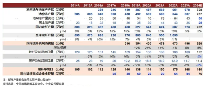 图:玻纤供需平衡表,中金公司
