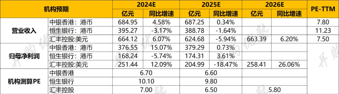 资产总额上,汇丰控股(215220.38亿元)>中银香港(35059.69亿元)>恒生银行(15334.09亿元)。