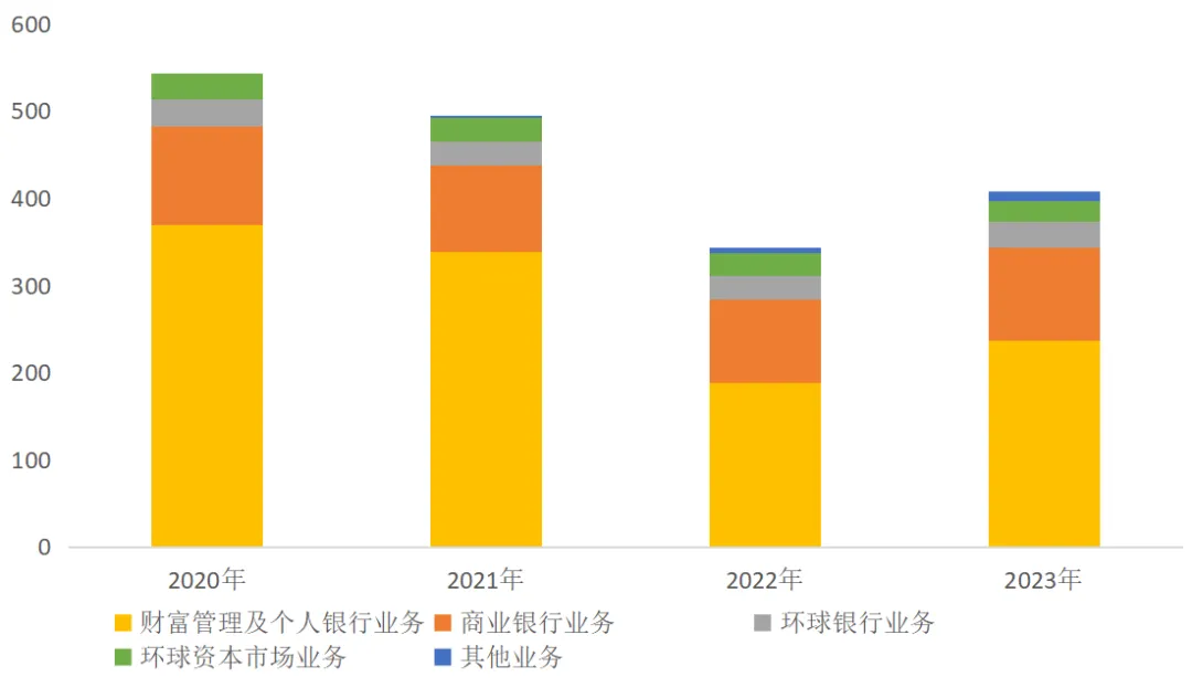2023年,财富管理及个人银行业务收入占比57.9%,商业银行业务(对公客户)占比26.2%,环球银行业务占比7.3%,环球资本市场业务占比6%。业务主要集中在中国香港,中国大陆收入占比约6%。