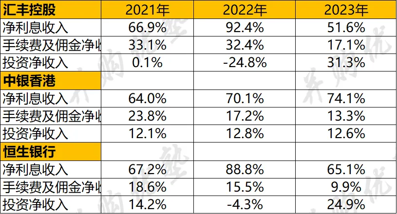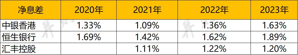 净利息收入上,汇丰控股(2535.32亿元)>中银香港(462.88亿元)>恒生银行(292.66亿元)。