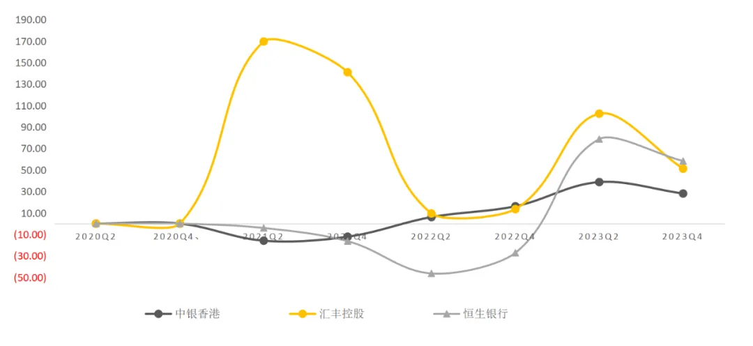 二、恒生银行——2023年,实现营业收入408.22亿港币,同比增长19%,海外加息带动净利息收入提升,其通过积极推动存款增长策略以吸纳往来及储蓄存款,尤其是外币存款客户及市场占有率有所增长;来自发行信用卡的服务费收入受惠于旅游业复苏及客户消费也实现增长;净利润止跌回升至178.48亿港币,同比增长58%。