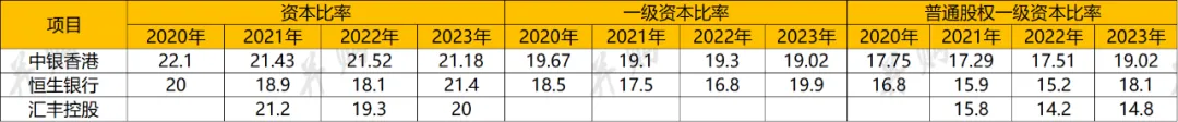 汇丰控股的资本充足率、流动性覆盖率稍低,但满足法定要求,且2023年有所回升,与当期权益资本增加有关。