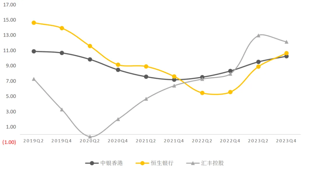 截至2023年末,其总资产同比减少9%至1.69万亿港币,反映出在利率持续高企的环境下贷款需求的疲弱。客户贷款(已扣除预期信贷损失准备)减少8%至0.86万亿港币。