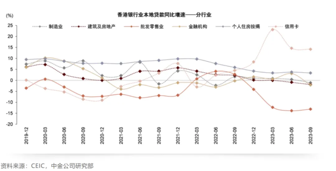 图:本地贷款同比增速-分行业 中金公司
