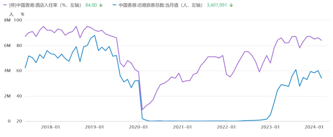 图:酒店入住率、访港人数,萝卜投研