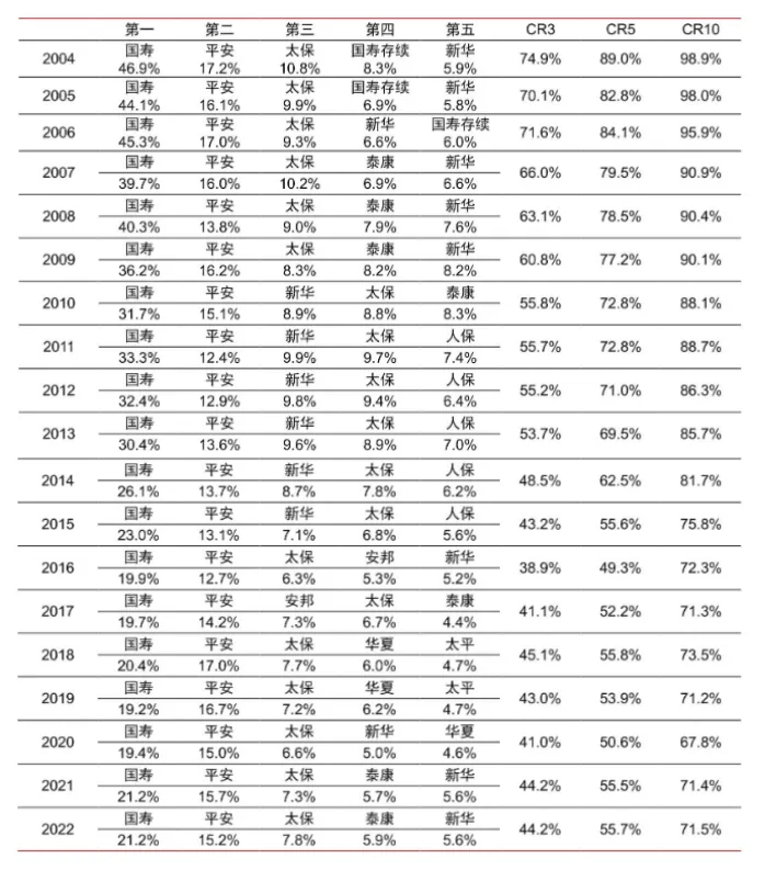 图:寿险行业市场格局变化(按保费收入),中信证券