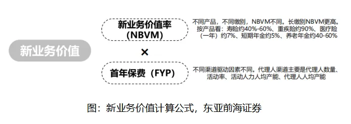 细拆新业务价值公式中的两大要素,新单保费增速,意味着每年新卖出保单的多少,能够预示未来收入增长情况;新业务价值率,意味着新销售出去的保单预期未来能够产生的税后利润折现值,能预示未来的利润率情况。