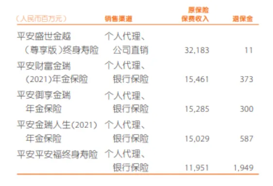 图:平安寿险前五大产品信息(单位:百万元),公司财报
