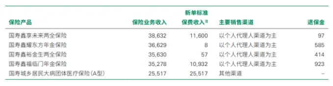 图:人寿寿险前五大产品信息(单位:百万元),公司财报