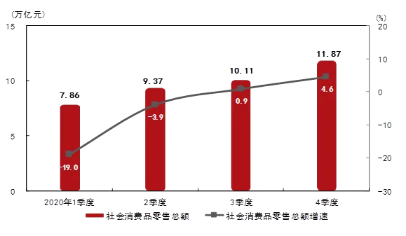 2020社会消费品零售总额及增速 (来源:国家统计局)