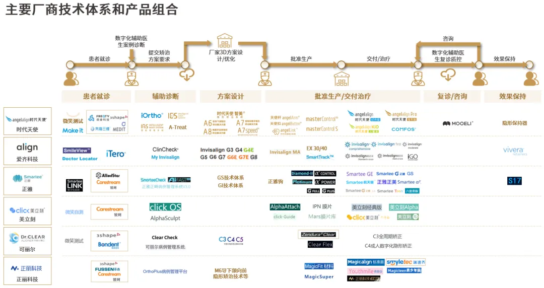 隐形正畸行业厂商的研发路径均以该模型体系为基础,各自于不同模块深入布局和创新发展,逐步形成自成一体的技术和产品组合。
