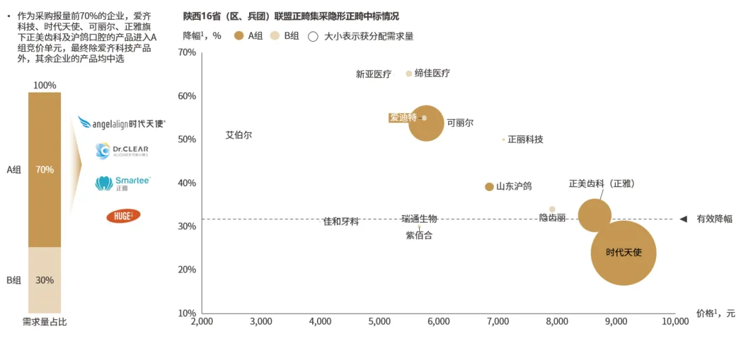 伴随行业的高速发展,业内形成了多样的沟通交流活动,医生、各协会组织、厂商及医疗机构参与探讨、交换意见,促进各口腔医疗从业人员对产品技术的理解,帮助市场大众对口腔健康认识的加深,共同推动行业健康发展。在行业蓬勃发展的背景下,中国首次开启16省(区、兵团)联盟正畸集采。合理化、市场化的机制设置下,隐形正畸获得合理议价空间,推动基层市场布局和国产替代化。资料来源:陕西省公共资源交易中心;灼识咨询