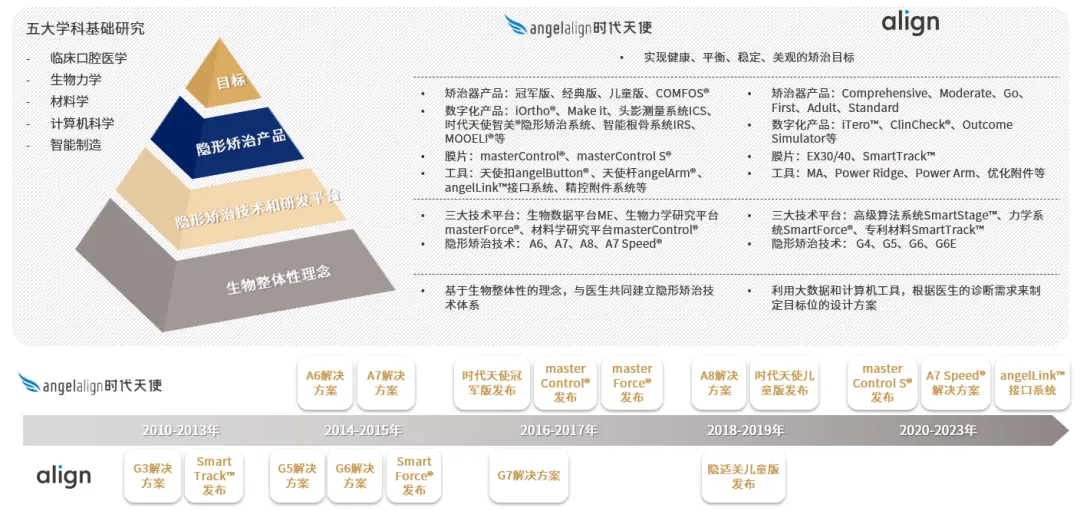 隐形正畸行业厂商的研发路径均以该模型体系为基础,各自于不同模块深入布局和创新发展,逐步形成自成一体的技术和产品组合。