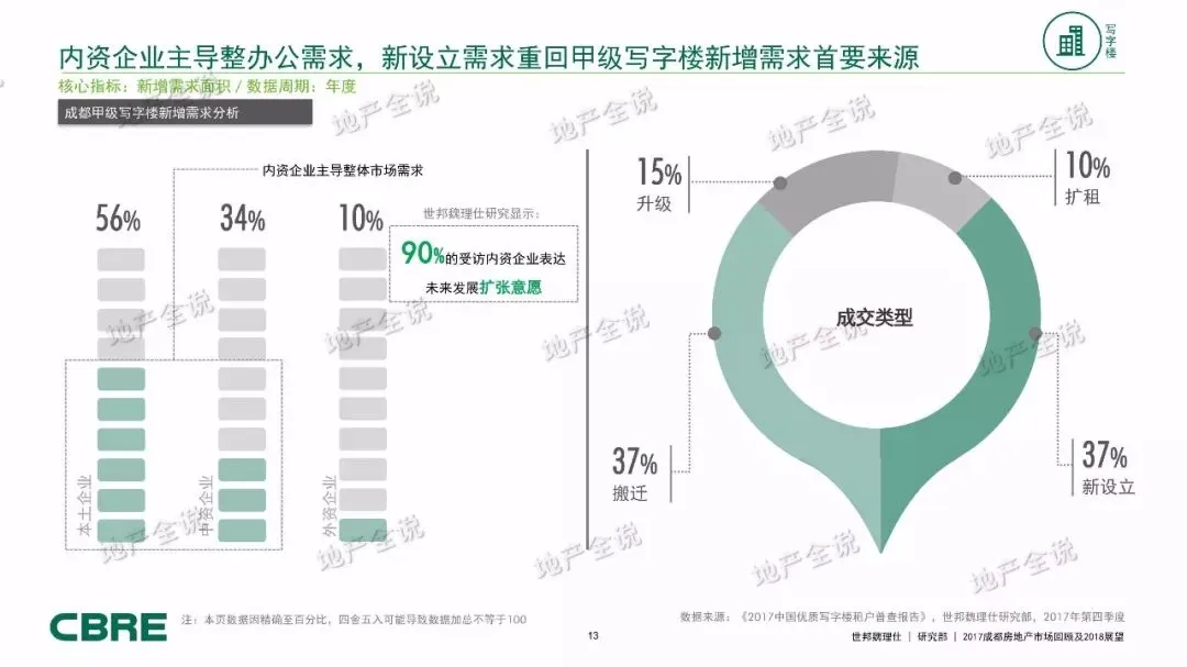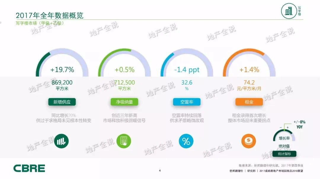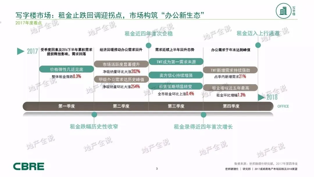 那么,成都写字楼市场2017年究竟有怎样的变化,2018年市场还将有怎样的趋势?本期小全全专门节选来自世邦魏理仕研究部的《2017成都房地产市场回顾及2018展望》报告,供大家参考。