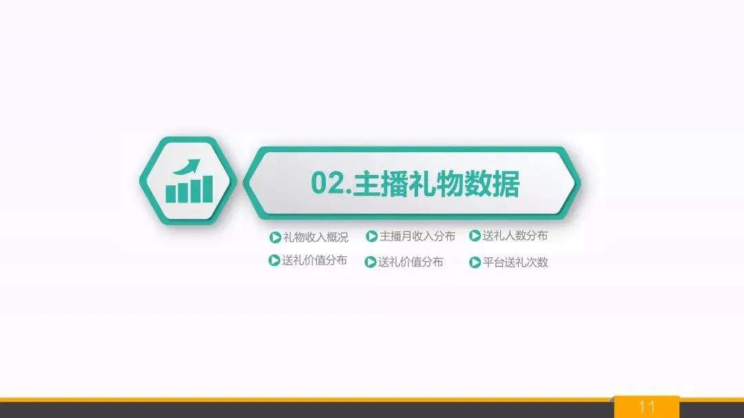2018年度全平台直播行业白皮书我们围绕主播数据分为四个部分给大家阐述,2018年总体数据、主播最为关心的礼物相关数据、粉丝活跃度体现的弹幕数据和一些主播特有的特征数据。每一项数据都和主播、直播行业息息相关。