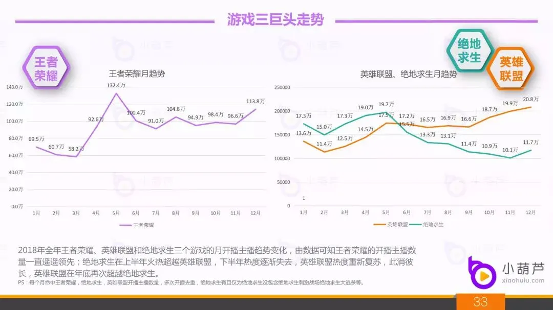 (PS:数据来源每个月命中王者荣耀,绝地求生,英雄联盟开播主播数量,多次开播去重,绝地求生有且仅为绝地求生没包含绝地求生刺激战场绝地求生大逃杀等。)