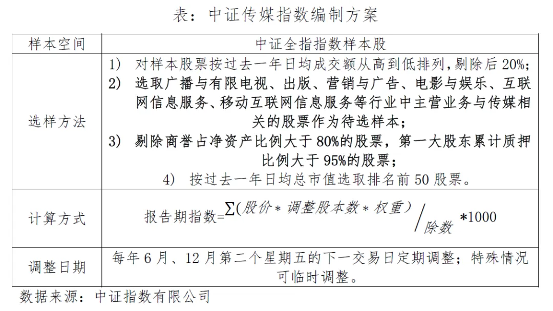 3) 中证传媒指数聚焦游戏行业:中证传媒指数成份股以游戏为主,权重占比约40%, 叠加电影、广告、视频等行业权重占比超过70%,成份股均为各细分行业龙头企业,并且从编制规则上规避了未来可能出现商誉爆雷的股票,是能够反映当前传媒板块走势的较好的投资标的。