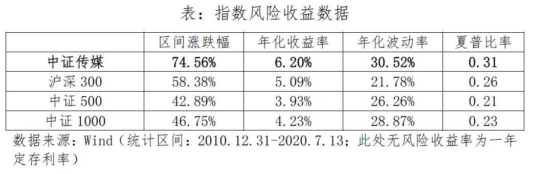 自基日以来,虽然波动率更大,但中证传媒指数相对于大盘指数表现出了更高的风险收益比。同时,较大的波动率意味着在牛市当中更高的预期收益,因此在当前市场中更具配置价值。