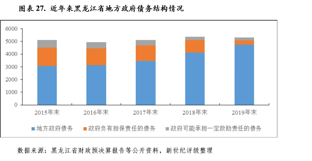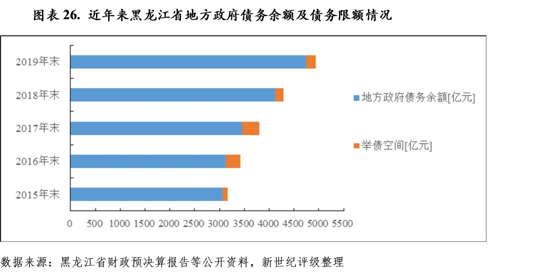 黑龙江省政府债务规模全国各省市中处于中下游,但由于自身财力偏弱,政府债务负担相对较重。近年来全省财政增收乏力,社会保障等财政刚性支出有增无减,债务规模持续增长,区域债务压力增大。