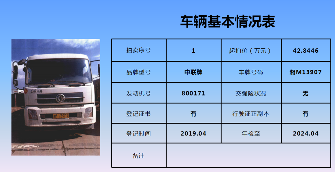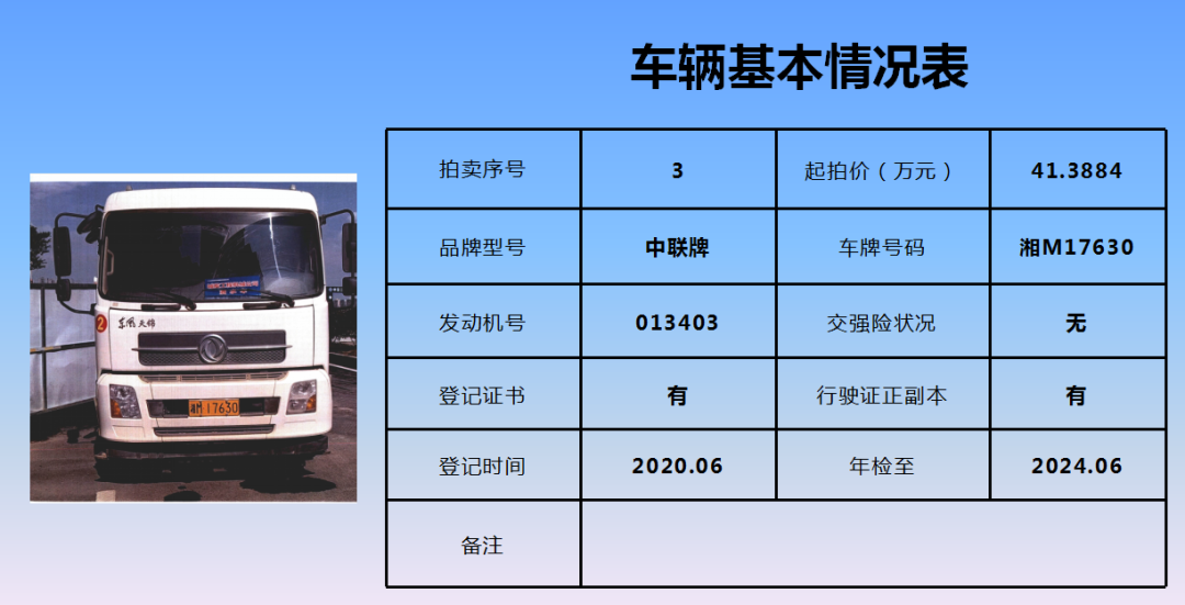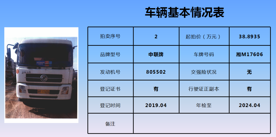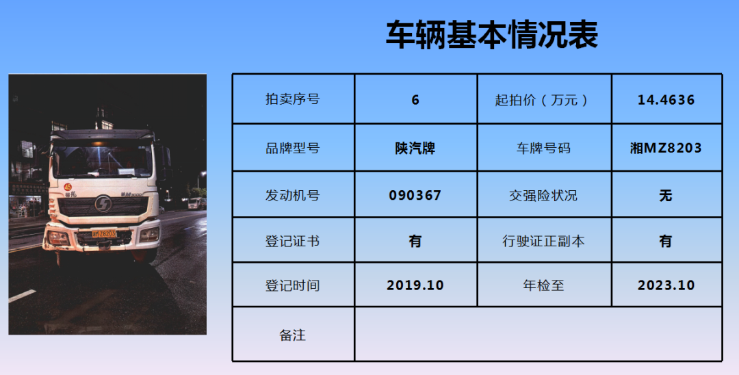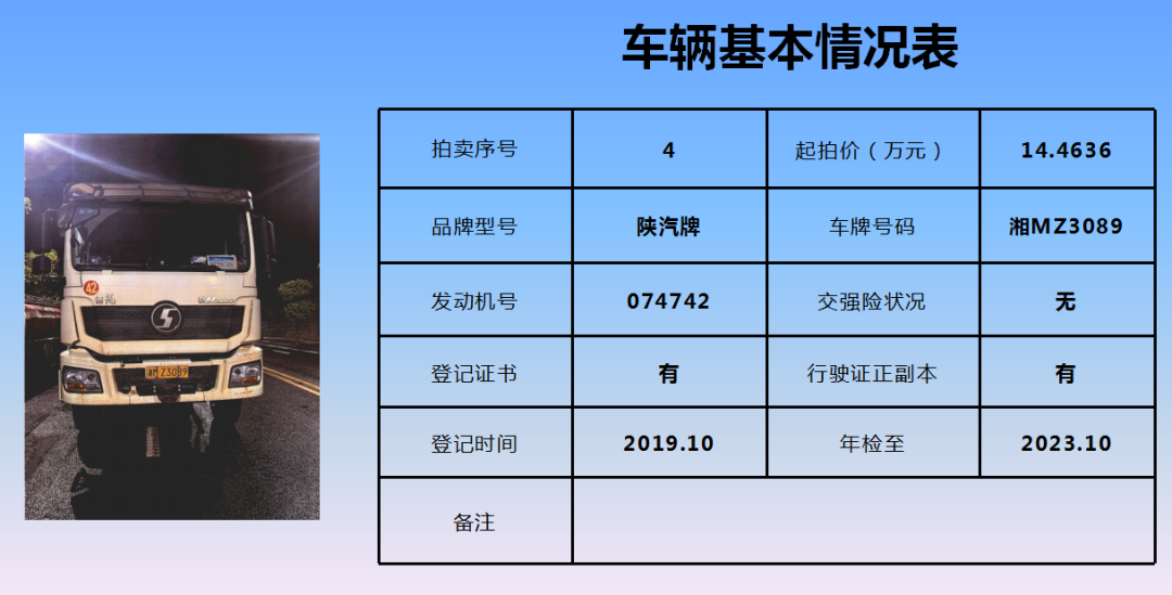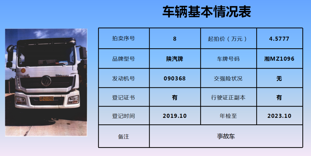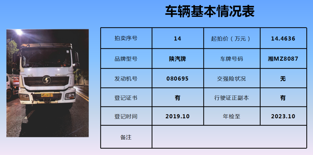 1.标的名称:永州市城发工程机械经营有限公司12辆陕汽牌渣土车、3辆中联牌水炮车,起拍价:4.5777万元-42.8446万元,竞买保证金2万元-5万元/辆。